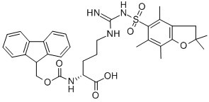 N-ALPHA-(9-FLUORENYLMETHYLOXYCARBONYL)-N'-2,2,4,6,7-PENTAMETHYLDIHYDROBENZOFURAN-5-SULFONYL-D-ARGININE;N-ALPHA-(9-FLUORENYLMETHOXYCARBONYL)-N-OMEGA-2,2,4,6,7-PENTAMETHYLDIHYDROBENZOFURAN-5-SULFONYL-D-ARGININE;N-ALPHA-9-FLUORENYLMETHOXYCARBONYL-NG-2,2,4,6,7-PENTAMETHYLDIHYDROBENZOFURAN-5-SULFONYL-D-ARGININE;N-ALPHA-FMOC-N-OMEGA-(2,2,4,6,7-PENTAMETHYLDIHYDROBENZOFURAN-5-SULFONYL)-D-ARGININE;N-ALPHA-FMOC-N-OMEGA-PBF-D-ARGININE;N-ALPHA-FMOC-N'-2,2,4,6,7-PENTAMETHYLDIHYDROBENZOFURAN-5-SULFONYL-D-ARGININE;N-ALPHA-FMOC-NG-2,2,4,6,7-PENTAMETHYLDIHYDROBENZOFURAN-5-SULFONYL-D-ARGININE;N5-[[[(2,3-Dihydro-2,2,4,6,7-pentamethyl-5-benzofuranyl)sulfonyl]amino]iminomethyl]-N2-[(9H-fluoren-9-ylmethoxy)carbonyl]-D-ornithine |