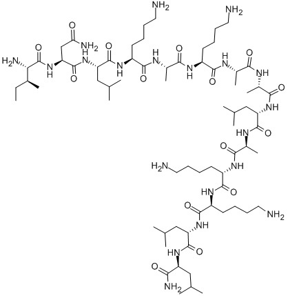 MAS 17; MASTOPARAN 17;INLKAKAALAKKLL-NH2; ILE-ASN-LEU-LYS-ALA-LYS-ALA-ALA-LEU-ALA-LYS-LYS-LEU-LEU-NH2; H-ILE-ASN-LEU-LYS-ALA-LYS-ALA-ALA-LEU-ALA-LYS-LYS-LEU-LEU-OH; MASTOPARAN 17 SYNTHETIC >97%; H-Ile-Asn-Leu-Lys-Ala-Lys-Ala-Ala-Leu-Ala-Lys-Lys-Leu-Leu-NH2; L-Leucinamide,L-isoleucyl-L-asparaginyl-L-leucyl-L-lysyl-L-alanyl-L-lysyl-L-alanyl-L-alanyl-L-leucyl-L-alanyl-L-lysyl-L-lysyl-L-leucyl- |