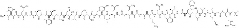 H-HIS-ALA-GLU-GLY-THR-PHE-THR-SER-ASP-VAL-SER-SER-TYR-LEU-GLU-GLY-GLN-ALA-ALA-LYS-GLU-PHE-ILE-ALA-TRP-LEU-VAL-LYS-GLY-ARG-GLY-OH |