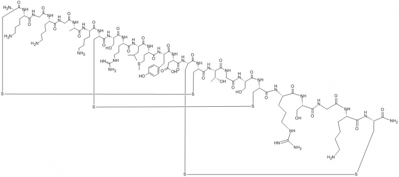Cys-Lys-Gly-Lys-Gly-Ala-Lys-Cys-Ser-Arg-Leu-Met-Tyr-Asp-Cys-Cys-Thr-Gly-Ser-Cys-Arg-Ser-Gly-Lys-Cys-NH2|H-Cys-Lys-Gly-Lys-Gly-Ala-Lys-Cys-Ser-Arg-Leu-Met-Tyr-Asp-Cys-Cys-Thr-Gly-Ser-Cys-Arg-Ser-Gly-Lys-Cys-NH2 |