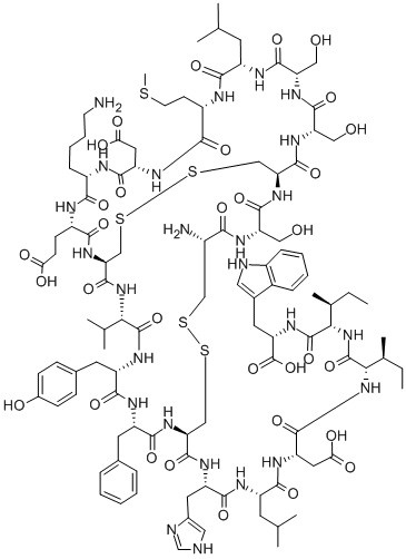 Cys-Ser-Cys-Ser-Ser-Leu-Met-Asp-Lys-Glu-Cys-Val-Tyr-Phe-Cys-His-Leu-Asp-Ile-Ile-Trp Disulfidebridges:1-15and3-11 | H-Cys-Ser-Cys-Ser-Ser-Leu-Met-Asp-Lys-Glu-Cys-Val-Tyr-Phe-Cys-His-Leu-Asp-Ile-Ile-Trp-OHDisulfidebridges:1-15and3-11 |