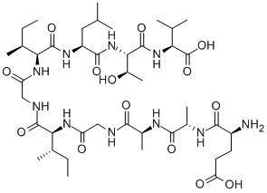 H-GLU-ALA-ALA-GLY-ILE-GLY-ILE-LEU-THR-VAL-OH;GLU-ALA-ALA-GLY-ILE-GLY-ILE-LEU-THR-VAL;EAAGIGILTV;ANTIGEN SK29-AA (26-35) (HUMAN);ANTIGEN LB39-AA (26-35) (HUMAN);MART 1 (26-35);MART-1 (26-35) (HUMAN);MELANOMA ANTIGEN RECOGNIZED BY T-CELLS 1 (26-35) (HUMAN) |