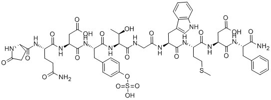 GLP-GLN-ASP-TYR(SO3H)-THR-GLY-TRP-MET-ASP-PHE-NH2 |