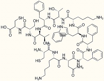 CYS-LYS-ASN-PHE-PHE-TRP-LYS-THR-PHE-THR-SER-CYS (DISULFIDE BRIDGE:CYS1-CYS12)SOMATOSTATIN-14 (3-14)H-CYS-LYS-ASN-PHE-PHE-TRP-LYS-THR-PHE-THR-SER-CYS-OHH-Cys-Lys-Asn-Phe-Phe-Trp-Lys-Thr-Phe-Thr-Ser-Cys-OH, (Disulfide bond)